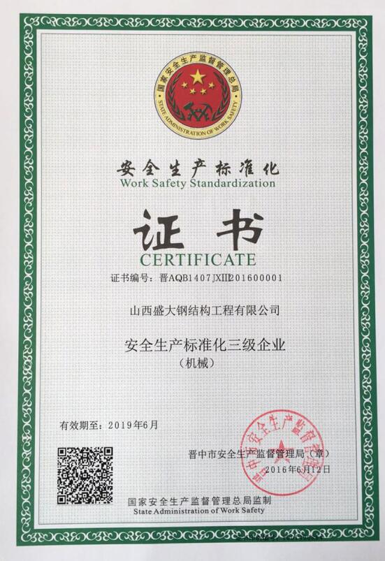 安全生產(chǎn)標(biāo)準(zhǔn)化證書